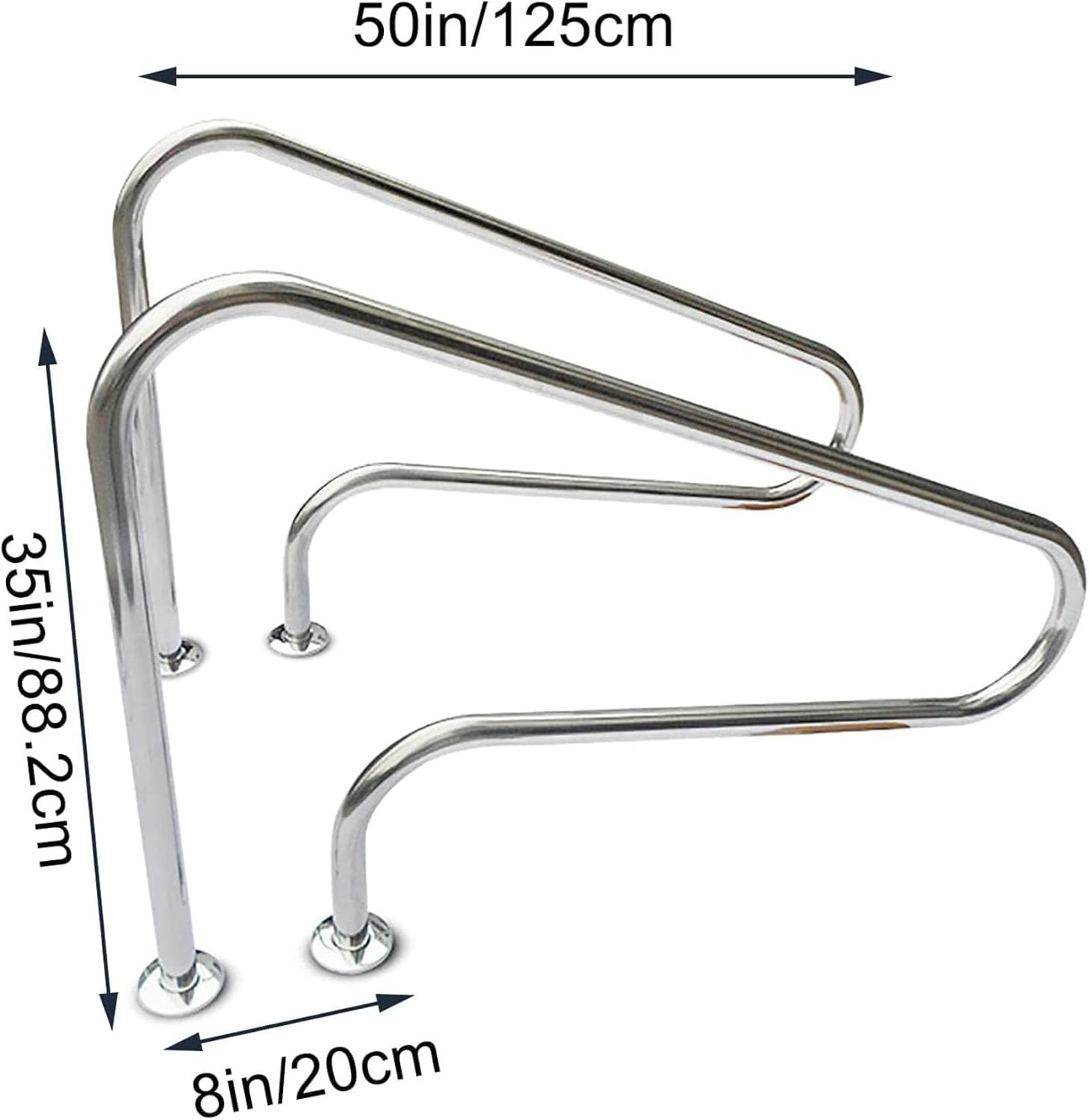 Our swimming pool handrails are made of strong and durable stainless steel material, strong load-bearing, anti-corrosion, strong safety, suitable for indoor and outdoor, enjoy life.★ This armrest adopts an ergonomic design, which is more suitable for people to enter and exit the swimming pool, which is greatly convenient for people to use, and it has a good load-bearing capacity. It can carry a weight of up to 440 pounds. It is elegant and beautiful at the same time as your swimming pool. Decorated. ★ Product Name: Stairs/Pool Railing ★ Product Specifications: --Material: 304 stainless steel --Product size: 50X35in/125X88.2cm --Load capacity: 440 lbs (Maximum) --Tube thickness: 1MM/1.2MM/1.5MM --Material: 304 stainless steel --Product List: 2×Swimming Pool Handrail ★ Product Features: --High-quality 304 stainless steel material, sturdy and durable. --Humanized curves, according to the principle of fluid dynamics, to decorate your pool well. --Easy to grasp, perfect and firm fit, help in and out of the pool, br/ing a sense of security. --Easy installation. ★ Maintenance: --When the stainless steel handrail is stained with dust, wipe it directly with a dry cloth. Pay Attention:Because manual measurement may have an error of 1-3cm, I hope you can understand.