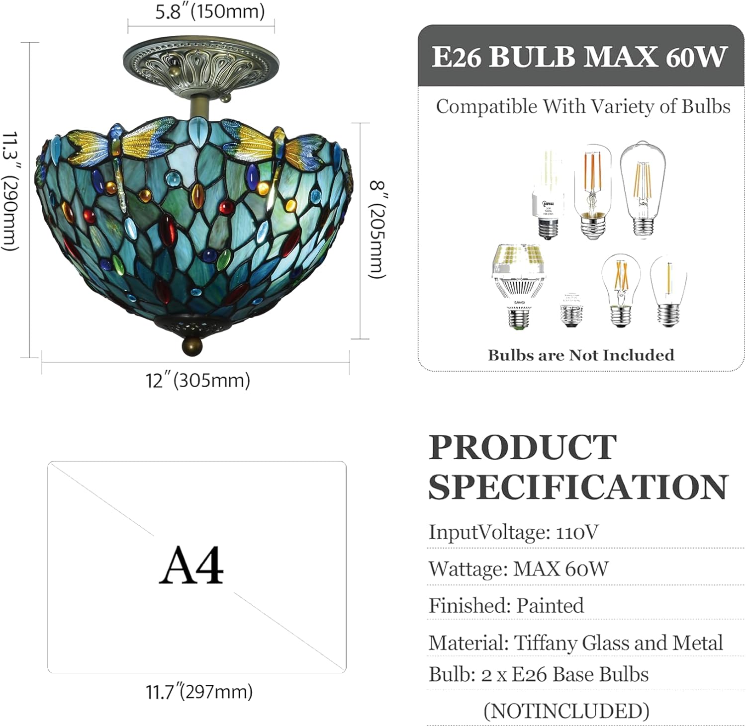 | Model Name | Msrzuds 12" Colorful Dragonfly Ceiling Light |