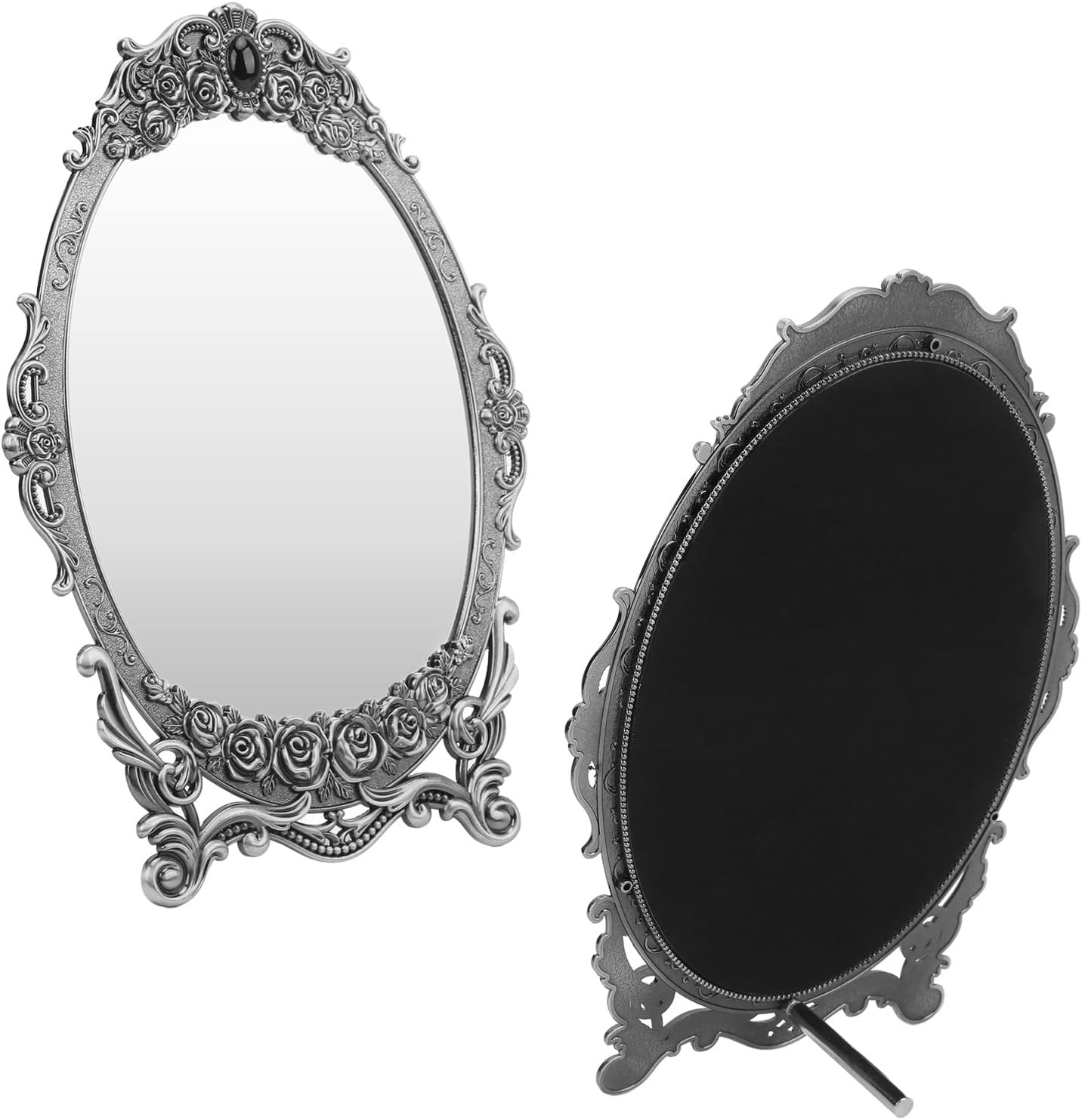 | Additional Features | vintage design with unique oval mirror, floral embossing, beaded edges, stand, and clear image |