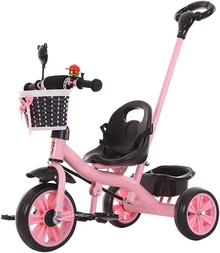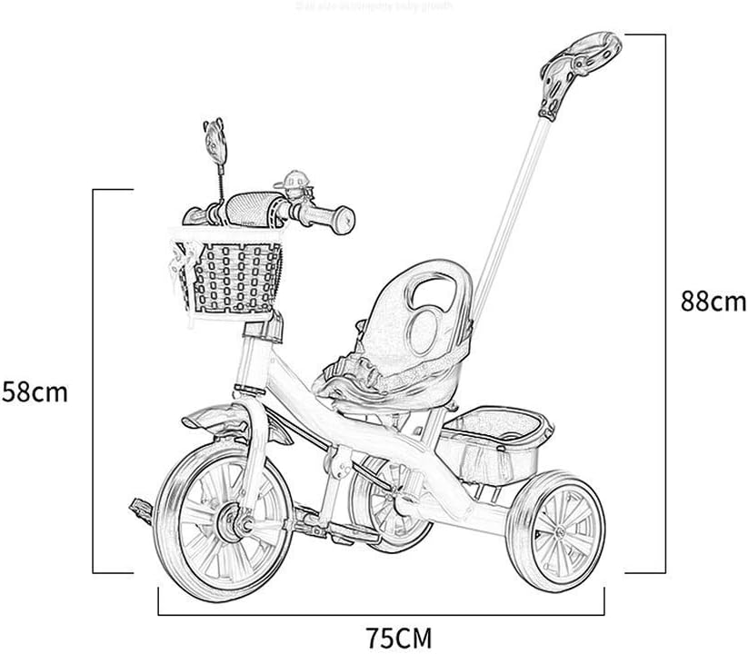 Let your kids have fun in their leisure time or holidays! A sturdy children's trike made of metal, with a bar for pushing and maneuvering. The tricycle has several functions. The handlebar can be removed. The soft handle and comfortable seat ensure a comfortable driving experience. The seat belt attached to the seat ensures a safe ride. 【Specifications】Product name: Children's tricycleColor: Blue, Green, PinkSize: 75x88x58cmMaterial: High carbon steel, environmentally friendly seatWhether to have a parasol: NoWhether to store the basket: Yes. Whether to assemble: YesRecommended load capacity: Less than 50kgSuitable age: 2-6 years oldNote:1. Due to lighting problems, the product and photo may have a slight color, please refer to the actual product.