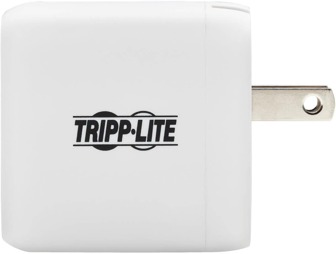 40W USB TYPE-C CHARGER GETS YOUR MOBILE DEVICES READY IN A HURRY, WHEREVER YOU ARE: This dual-port USB charger lets you quickly and safely charge two USB-C mobile devices at the same time. Plug it into any NEMA 1-15R, NEMA 5-15R or NEMA 5-15/20R AC outlet to ensure your laptop, smartphone, tablet and other USB-C devices charge at their fastest possible speed. The USB-C ports support USB Power Delivery (PD) 3.0 charging up to 20W (5V 3A, 9V 2.22A, 12V 1.67A) apiece when used together. When used by itself, each USB-C port supports up to 30W (5V 3A, 9V 3A, 12V 2.5A) for charging a device.GALLIUM NITRIDE TECHNOLOGY ALLOWS HIGH-WATTAGE CAPACITY IN A COMPACT PACKAGE: This USB wall charger is smaller and lighter than most standard wall chargers that come with a laptop. Ideal for travel, it is designed using GaN technology, which has a higher power density than silicon and provides higher efficiency than standard USB-C fast chargers. It also operates under much cooler temperatures, despite its small size, meaning it won't get hot while charging your device. BUILT-IN AUTO-SENSING ADJUSTS TO PROPER POWER LEVEL TO GET YOUR DEVICES TO 100%: The USB-C ports feature auto-sensing technology that automatically adjusts to your device's appropriate power level. The unit protects against overheating, overcurrent and overcharging. In fact, it stops charging as soon as your device's battery is at full capacity. A blue LED indicates charge status. FOLDING PLUG DESIGN PERFECTLY SIZED FOR TRAVEL: The compact USB Type-C charger, small enough to fit in your hand, is easy to carry in your purse, suitcase, backpack or laptop bag. The NEMA 1-15P plug folds into the unit when not in use to shield it from damage and prevent it from snagging or scratching your bag's contents.