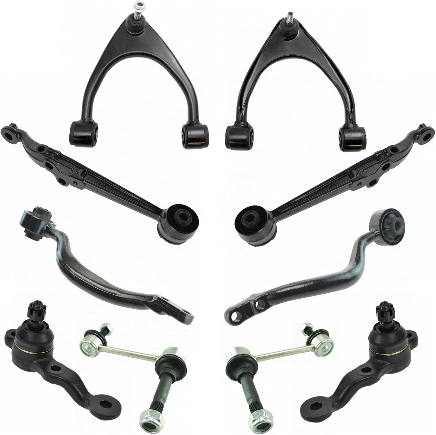 10 Piece Suspension KitKit Includes(2) Front Lower Ball Joints(2) Front Lower Forward Control Arms(2) Front Lower Rearward Control Arms(2) Front Sway Bar Links(2) Front Upper Control Arms with Ball JointsFitmentLexus IS300 2001-05 - FrontProduct AttributesQuantity: 10 PieceProduct Features Application Specific Design: No modifications necessary Anti-Corrosion Coated: Enhanced surface life Pre-greased: No additional maintenance required Kitted for Restored Performance: Improved road-feel and handlingItem DetailsTRQ suspension kits are manufactured using premium raw materials and coatings for extended service life. Each TRQ suspension component is designed to be a direct, maintenance-free replacement to the stock unit. To extend the life of your steering and suspension components, TRQ recommends replacing components in pairs, sets, or kits. All products are fit and road-tested in our Massachusetts R&D facility to ensure we deliver on our promise of Trusted Reliable Quality.Reference Numbers101-5489102-7734102-7735102773410277352606140260614126071172607118260824526082462CB860892CB864192CB8642043330590654333059066433305913543340590654334059066433405913545D1037645D104944806853010480695301048069590254861059025486305902548660-53010486605301048670-5301048670530104867053101488202204150724615072462511-58188R511-58189L512-58608R512-58609L522-103522-104522-843522-844526-103526-104CA1008CA1009CA4897CA4898CA64043CA64043PRCA64044CB86089CMS861245CMS861246CMS86177CMS86178CMS86179CMS86180FA3141FA3142JTC2975JTC2976K500066K500067K750062MS861246MS86179MS86180MS86510MS86511MS86815RK641525RK641526RK642103RK642104SR64163SR64163PRSR64164SR64164PRSUS00188SUS00189SUS05848SUS05849SUS05962SUS05963SUS07094TC6301TC6302TC6603TC6604TC7638TC7639
