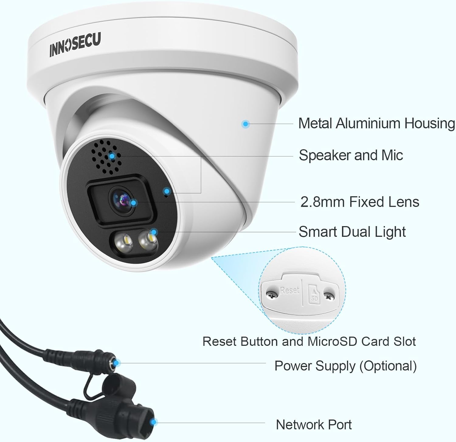 • WORK WITH NVR: This camera is fully compatible with INNOSECU PoE NVR and is highly recommended to be used with it to create a surveillance system. This ensures plug-and-play functionality and maximizes the camera's AI features. It is also partially compatible with third-party PoE NVRs