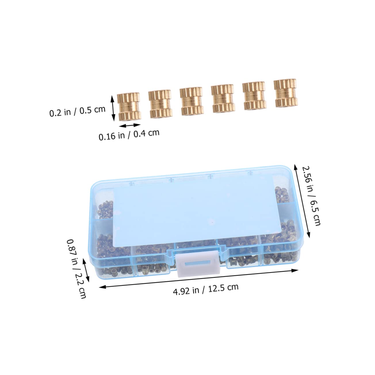 Package Include 1500 x Knurled Nut Features - Material: Copper knurled thumb nuts. - Size: About 0.50X0.40X0.40cm/0.20X0.16X0.16inch threaded insert nuts. - Color: Golden female threaded knurled nuts. - : the opposite spiral knurled nuts ensure a balanced high tightening and release torque, as well as a high pull-out force knurled threaded nuts. - This knurled thread insert nut can be used frequently for injection moulding to secure it firmly insert nuts. - Made of brass material, thermal conductivity and heat resistance knurled nut. - Can be built into hole by or heat or poured during injection knurled nuts. - Can be widely used in injection moulded or 3D printing for firm fixing threaded inserts nuts.Goods Descriptionknurled thumb nuts The knurled nuts are made from the brass, which excellent corrosion resistance.female threaded knurled nuts The thread is quite , clean and burr- .knurled nuts Widely used on plastic housing, plastic housing, communication facilities plastic housing, household appliance plastic housing, car, electrical appliance, electronic and other plastic casing
