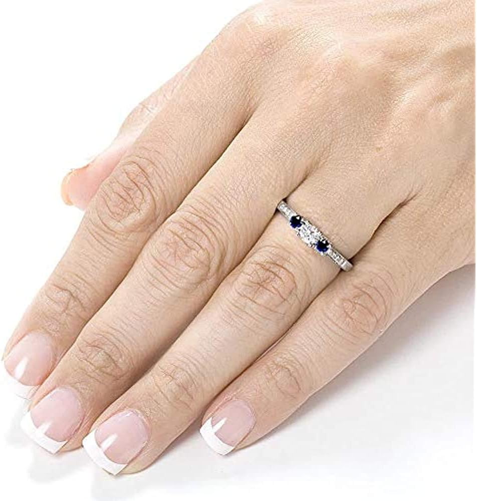 1.00Ct Round Cut Blue Sapphire & Diamond 14K White Gold Plated 925 Sterling Silver Engagement Three Stone Wedding Ring For Women's