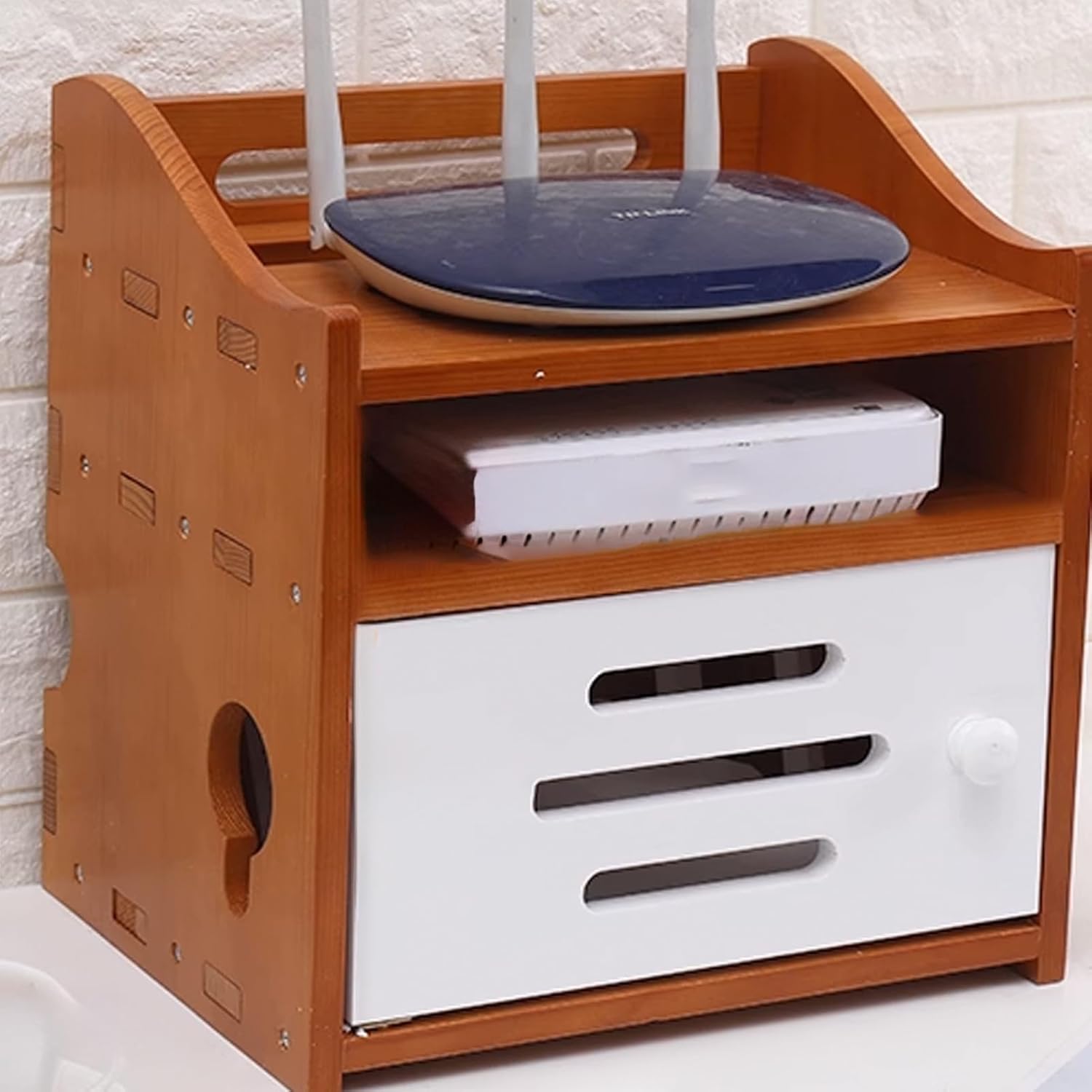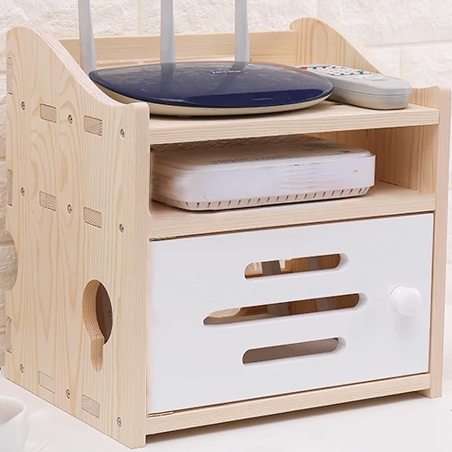 Crafted from high-quality materials of bambooThis Wi-Fi storage cabinet uses a magnetic designThere are specially reserved holes on the side to facilitate the passage of wiresWith thoughtful design features, such as ventilation holes on the top and back,Product SpecificationsProduct Name: Wi-Fi Router Cabinet/Media Storage CabinetMaterial: woodColor: Natural wood color, natural wood paint color, white, gray, reddish brown, oak colorDimensions:30×23×30m/11.8×9×11.8inPackage Included: 1 x Wi-Fi Box HideScope of application: living room, office, desk, bedroom, etc.NoteThe router box is not suitable for all types of routers.Please check the size of the outer box carefully before purchasing,and confirm the size of your router.