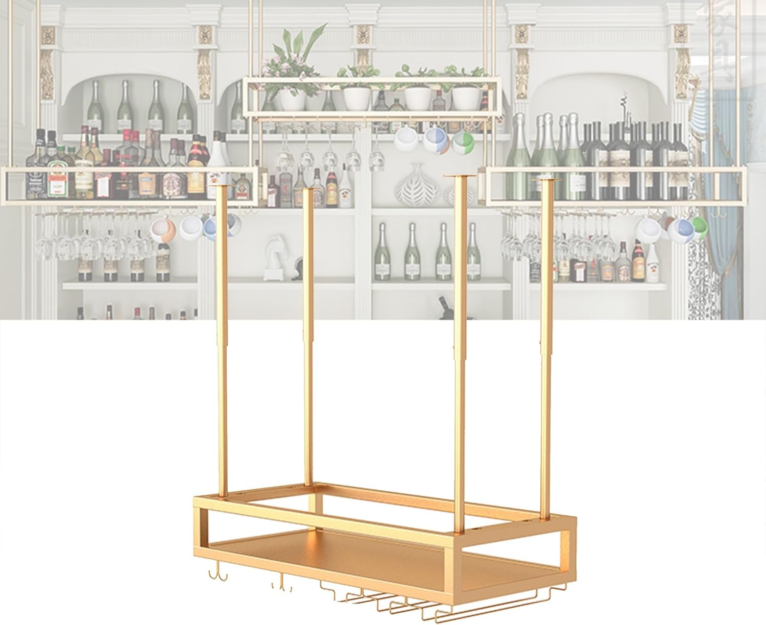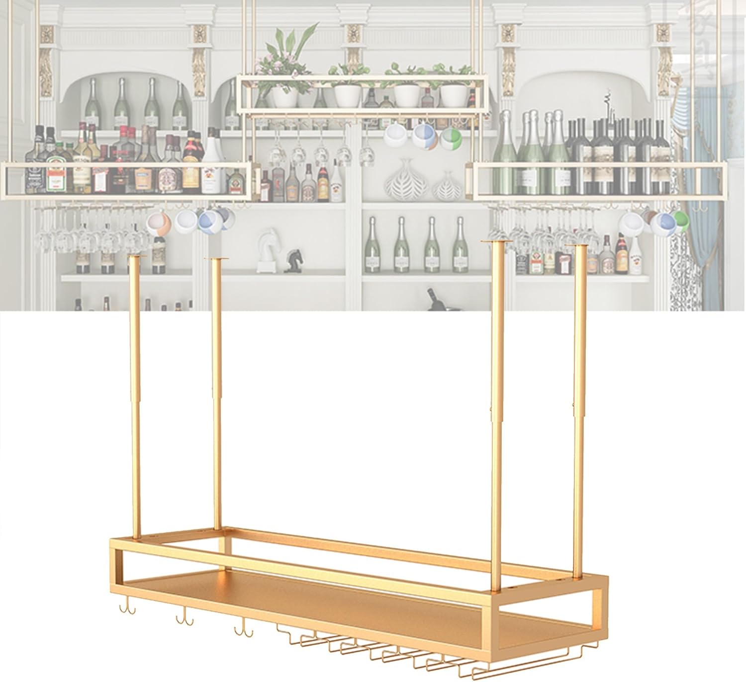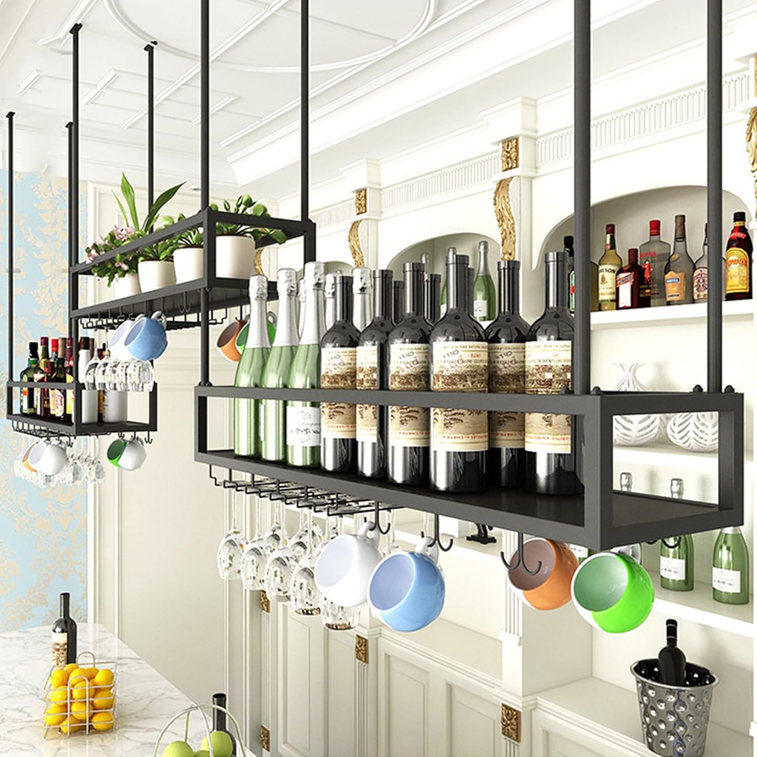 Elevate your home decor with our stylish wall-mounted wine rack, designed to blend seamlessly with any interior aesthetic. This modern wine rack not only serves as a functional storage solution but also as an exquisite display piece for your wine collection. Perfect for use in your kitchen, dining room, or home bar, it brings a touch of elegance to any space. Crafted from a sturdy iron frame, our wine rack guarantees durability while showcasing your favorite bottles and glassware. The minimalist design allows for easy integration into various settings, whether it‘s your cozy living room, chic lounge, trendy café, or sophisticated dining area. It's not just a storage solution; it transforms your wall into a stunning visual centerpiece. Imagine entertaining guests as you effortlessly access your wine collection, or enjoying a quiet evening with a glass of your favorite vintage displayed beautifully in your home. This wine rack is perfect for both casual and formal occasions, enhancing your hosting experience while elevating the overall ambiance of your space. Please note that color variations may occur due to different screen settings or lighting when the photo was taken. Additionally, minor measurement discrepancies of 1-2 cm may arise due to various measuring methods. If you have any questions or need assistance, feel free to reach out to us, and we will respond within 24 hours. Invest in this wall-mounted wine rack today and transform your living space into a refined haven for wine lovers.